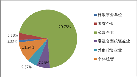 从用人单位性质来看(如图2),私营企业是市场招聘的主体,占招聘单位总数的70.75%,较2011年第四季度67.08%上升3.67%。其他按排名依次是:个体经营企业、港澳台商投资企业和外商投资企业,分别占招聘单位总数的11.24%、7.23%和5.57%。国有企业占招聘单位总数的3.88%,较2011年第四季度5.51%下降1.63%。