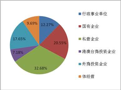 3、本季度国有企业和私营企业仍是求职人员理想的就业单位类型。私营企业意向求职人数所占比例为32.68%,高出位居第二的国有企业12个百分点,较2011年第四季度27.18%上升5.50%;而国有企业比例略低,为20.55%,较2011年第四季度19.05%上升1.50%。此外,也有部分毕业生比较青睐事业单位和外商投资企业。