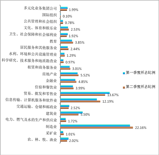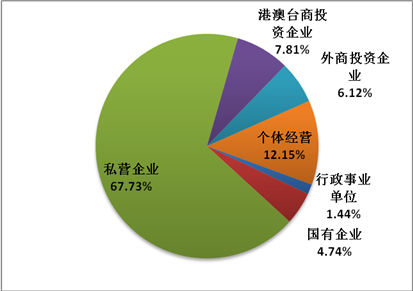 从用人单位性质来看(如图2),私营企业仍是市场招聘的主体,占招聘单位总数的67.73%,与上季度70.75%相比下降3.02%。个体经营企业排名第二,所占比例为12.15%,与上季度11.24%相比上升0.91%。其他按排名依次是:港澳台商投资企业、外商投资企业,分别占招聘单位总数的7.81%和6.12%,与上季度相比分别上升0.58%和0.55%。国有企业占招聘单位总数的4.74%,与上季度3.88%相比上升0.86个百分点。