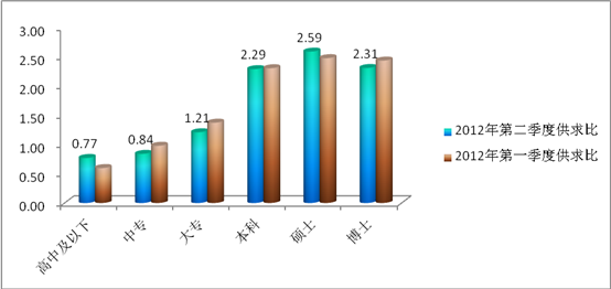 2、2012年第二季度用人单位需求和求职人员学历对比