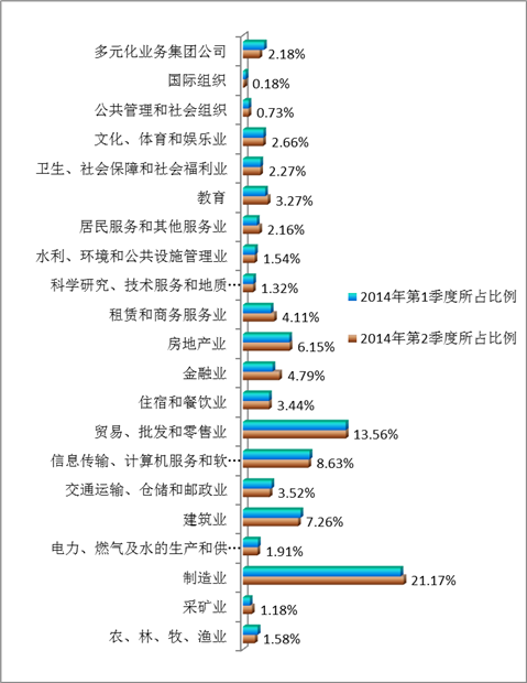 性质 | 2014年第二季度所占比例 | 2014年第一季度所占比例 | 环比 | 同比 |