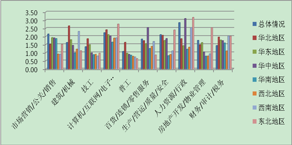 职位类型 | 总体情况 | 华北 地区 | 华东 地区 | 华中 地区 | 华南 地区 | 西北 地区 | 西南 地区 | 东北 地区 |