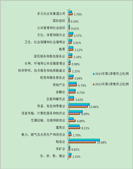 图3、2013年第三季度用人单位所需行业分布图