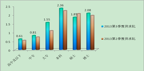 图1、2013年第三季度用人单位所需学历所占比例