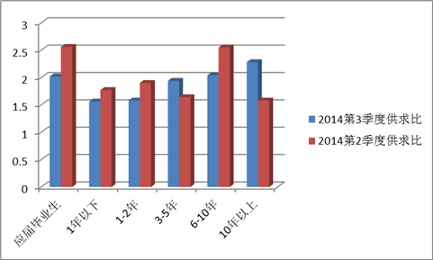 通过对2014年第三季度人才市场供求情况的分析及与前期的比较分析,可以看出,人才市场上供求不匹配的问题依旧存在,且在不同的地区表现也不一样。