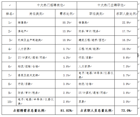 2013年第一季度十大热门招聘岗位和十大热门应聘职位