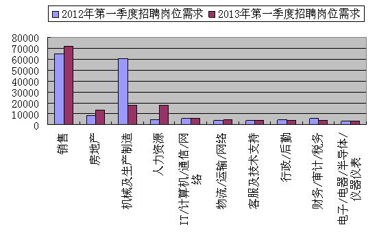 (二)2012-2013年第一季度用人单位岗位需求对比情况