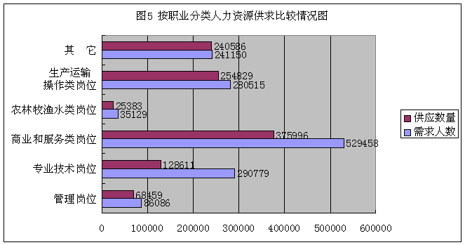 五、按职业岗位分类人力资源供求比较情况