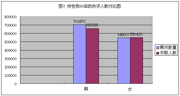 七、按求职人员性别分类供求情况