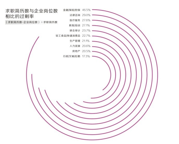 据华中人才市场部的分析,由于近年来金融行业盈利远超实体经济,总体薪酬水平居前,平均薪酬是其他行业的1.5—2.5倍,而作为金融行业三大领域的银行、证券和期货,则受到了求职者更为猛烈的追捧。优先考虑投身金融行业的大学生较去年有较大程度的增长,求职简历数相对企业岗位数的过剩率也首屈一指。