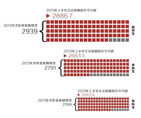 据湖北省人才市场招聘部介绍,由于硕士、博士研究生连年扩招,目前我省2012、2013届研究生人数将近7万人,为了能够在毕业后留汉获得职业上的竞争优势,考研或考博的人数也创新高。受宏观经济形势影响,钢铁、石化、船舶及汽车行业需求下降,企业薪酬水平应声而落,影响最大的就是硕士以上学历毕业生。