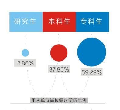 首先,从用人单位对求职者学历的需求比例看,需求分布情况如下: