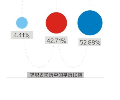 从用人单位对求职者学历的需求比例和求职者简历中的学历分布比例来看,随着研究生扩招规模加大,人才市场研究生、本科学历人才总体需求呈现微弱的“过剩”,而专科生总体则呈现“短缺”。