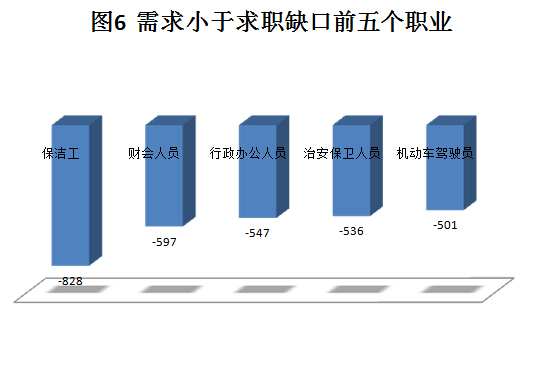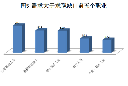 六、按需求大于求职缺口最大的前五个职业情况