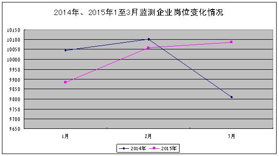 纵观1至3月以来临沧市监测企业岗位走势变化情况看,监测企业岗位总数呈增长趋势,但岗位增长点比较单一,随着制造业生产季即将结束,季节性用工减少,预计监测企业岗位总数将会呈现下降趋势。(临沧市人社局 董琳)